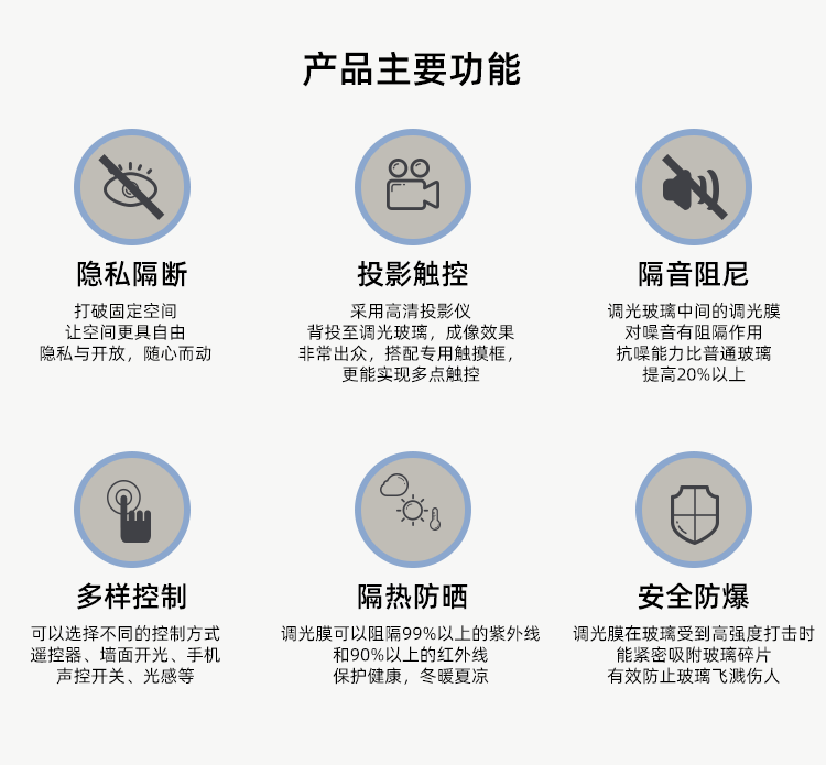 目前本產品在歐美日等國有著廣泛應用。好萊塢影星丶導演丶商業巨子丶跨國公司用光變玻璃裝飾高尚建筑,游樂...